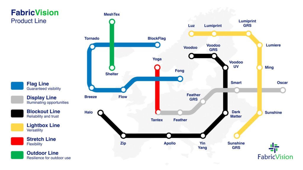 Premium textiles for tension frames and banners — perfect for crisp, frontlit visuals.